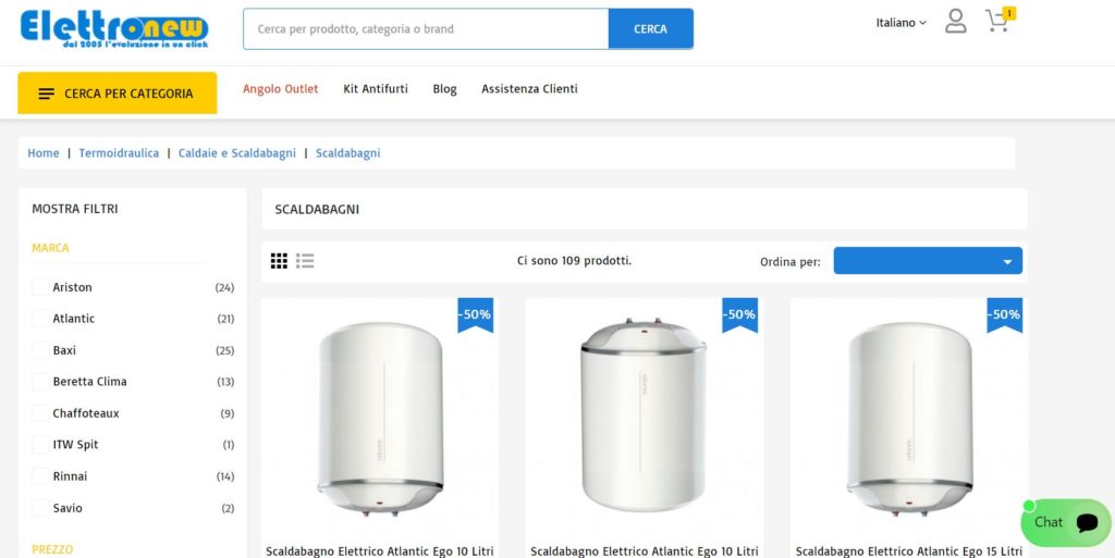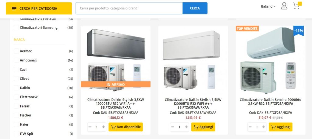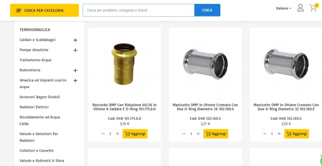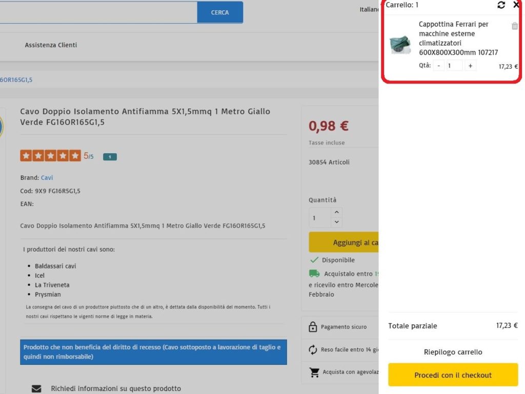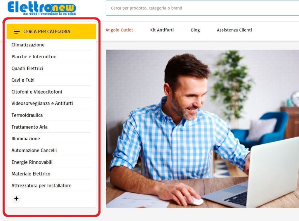 Tornando in home page, sulla sinistra è posizionato l’elenco delle categorie. E’, in sostanza, il nostro catalogo on line: in ogni categoria troverete i prodotti dei vari marchi trattati da Elettronew. Da qui comincia la vostra esperienza d’acquisto, del tutto nuova rispetto al passato. Aggiungendo un prodotto al carrello e cliccando sul suo simbolo in alto a destra, si aprirà la relativa finestra, mentre voi potrete continuare lo shopping tenendo sott’occhio tutto quello che avete già inserito nel carrello stesso. Un’esperienza del tutto reale, esattamente come accadrebbe in un negozio fisico.