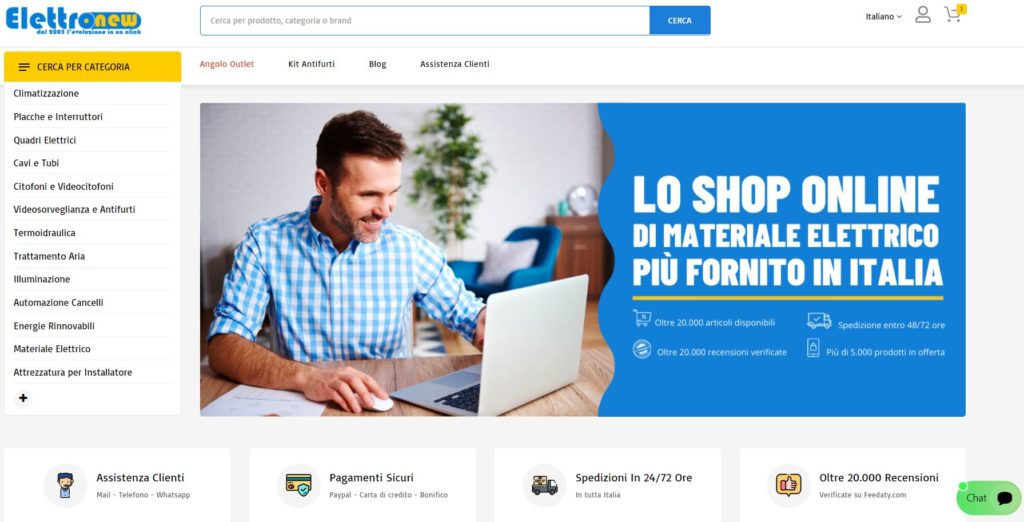 Elettronew nasce nel 2005, ormai più di 15 anni fa. Tre lustri in cui il nostro sito ha attraversato diversi momenti di crescita, cavalcando l’onda di uno sviluppo sempre più ampio del web. Dalle origini ad oggi, i prodotti elettrici hanno vissuto a loro volta una sorta di rivoluzione industriale con, ad esempio, lo sviluppo della domotica. E in questi cambiamenti, spesso, siamo stati i primi a crederci. Sul nostro sito, ad oggi, è possibile trovare oltre 100 dei migliori brand di materiale elettrico, da Bticino a Gewiss, passando per Vimar ed Urmet, senza tralasciare tutti gli altri.