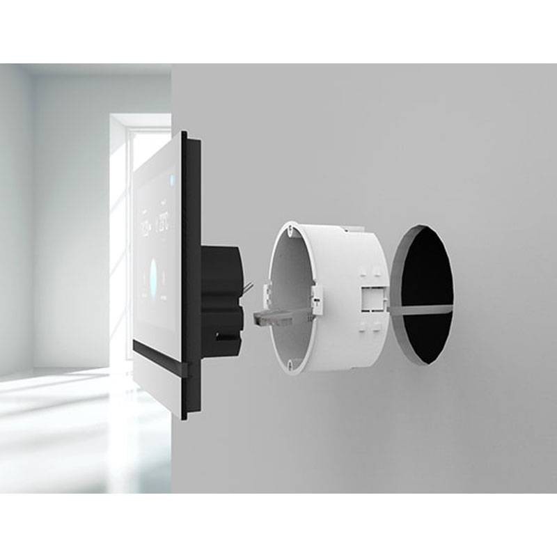Installationsdose für die 2N-Innensprechstelle, die es ermöglicht, das Produkt nach der finalen Montage der Gegensprechanlage leicht zu drehen um eine waagrechte Installation zu erreichen. Sie benötigt eine 103 mm breite und 50 mm tiefe kreisförmige Öffnung:
