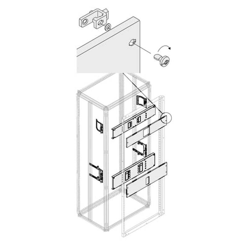 Bausatz XT1 Abb für den horizontalen Einbau von Tmax-Motorschaltern/Drehgriffen, mit folgenden Merkmalen:
