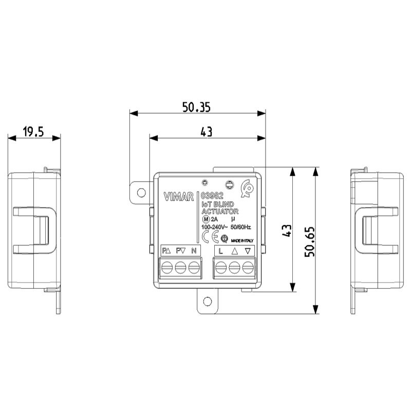 Vimar connected View Wireless IoT Rollladenmodul ist eine elektronische IoT-Steuerung für 1 Rollladen mit Lamellenausrichtung mit Umschaltrelaisausgang für Motor cos? 0,6 2 A 100-240 V~ 50/60 Hz: