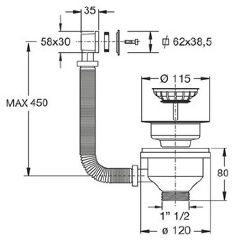 Bonomini Canestro Ablaufgarnitur Spüle mit rechteckigem Überlauf mit Gitter mit den folgenden Eigenschaften: