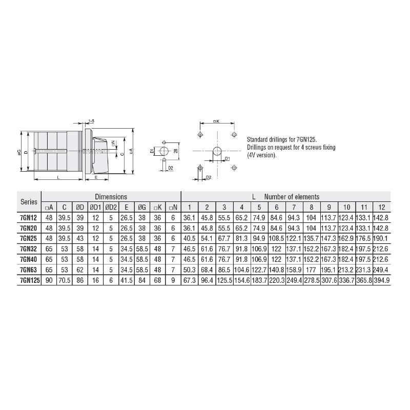 Lovato Nockenschalter der Serie 7GN mit den folgenden Merkmalen: