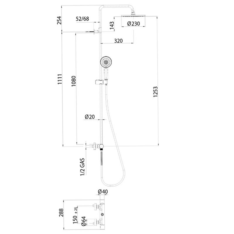 Bossini Cosmo Duschsäule mit Kopfbrause, Handbrause und Halterung L10069000008