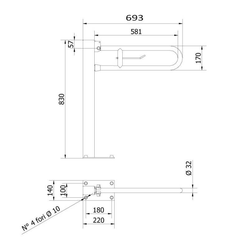 Der aus verzinktem und lackiertem Stahlrohr mit einem Durchmesser von 32 mm gefertigte Bügel garantiert eine mechanische Belastbarkeit von bis zu 150 kg, auch dank der massiven, auf die Platte geschweißten 60x80 mm großen Säule. Die weiße, verschleißfeste und chemikalienbeständige Lackierung eignet sich perfekt für sanitäre Bereiche.
