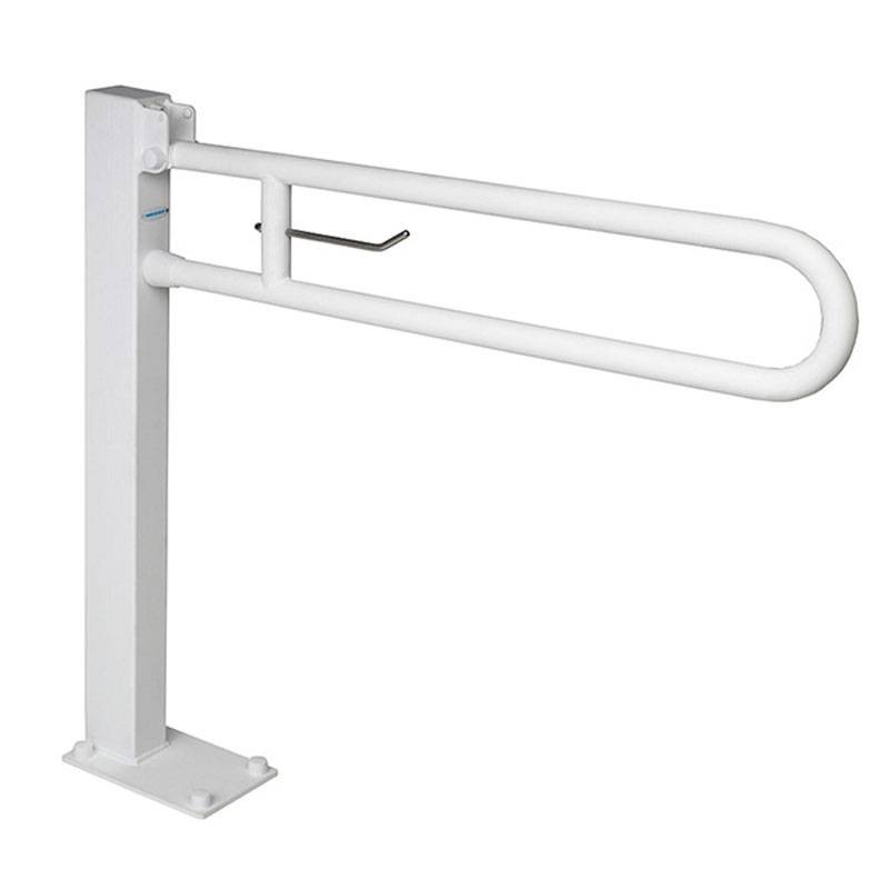 Dieser 68 cm lange, kippbare Stützgriff, die mit einem integrierten Toilettenpapierhalter ausgestattet und an einer bodenstehenden Säule montiert ist, wurde für maximale Sicherheit, Komfort und Unabhängigkeit in Badezimmern für Menschen mit eingeschränkter Mobilität entwickelt. Sie ist ideal für behindertengerechte Bäder in öffentlichen Einrichtungen, Krankenhäusern, Pflegeheimen oder im häuslichen Umfeld.