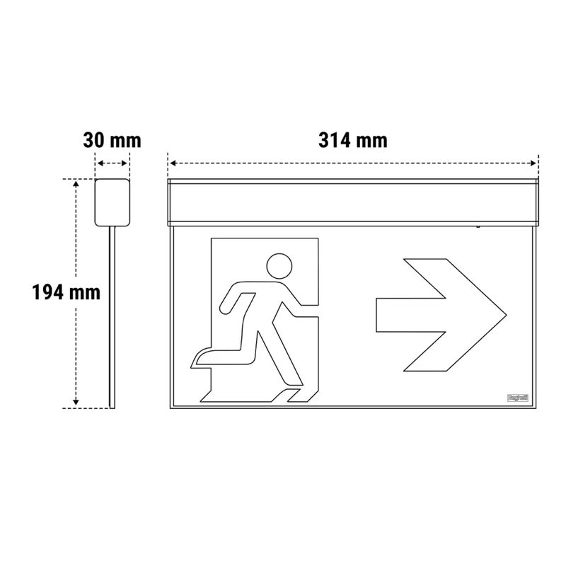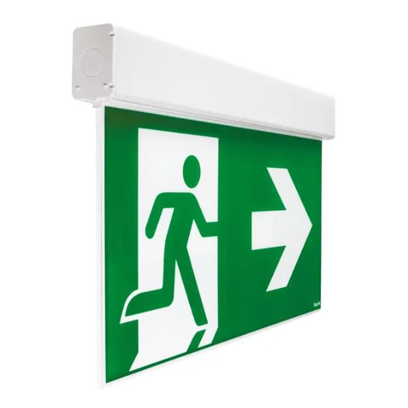 LED-Notleuchte mit Leuchtzeichenfunktion, konzipiert für öffentliche Räume, Büros und Geschäftsräume. Dank des im Lampenkörper integrierten Chips kann die gewünschte Autonomie zwischen 1, 2 oder 3 Stunden gewählt werden, um einen kontinuierlichen Betrieb im Falle eines Stromausfalls zu gewährleisten.