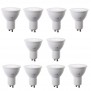 Die Glühbirnen mit GU10-Sockel und den Abmessungen Ø 50 x 57 mm sind mit den meisten Einbaustrahlern oder Deckenlampen kompatibel. Das weiße Thermoplastgehäuse garantiert geringes Gewicht, Hitzebeständigkeit und Sicherheit im Gebrauch.