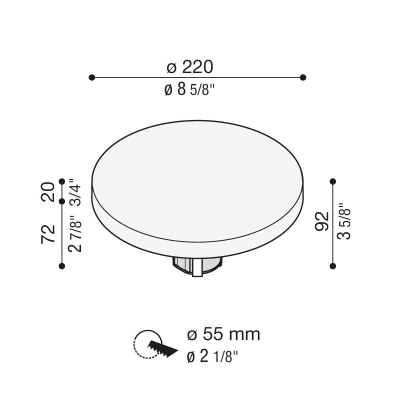 - Abmessungen: 220 mm Durchmesser - Lochdurchmesser 55 mm