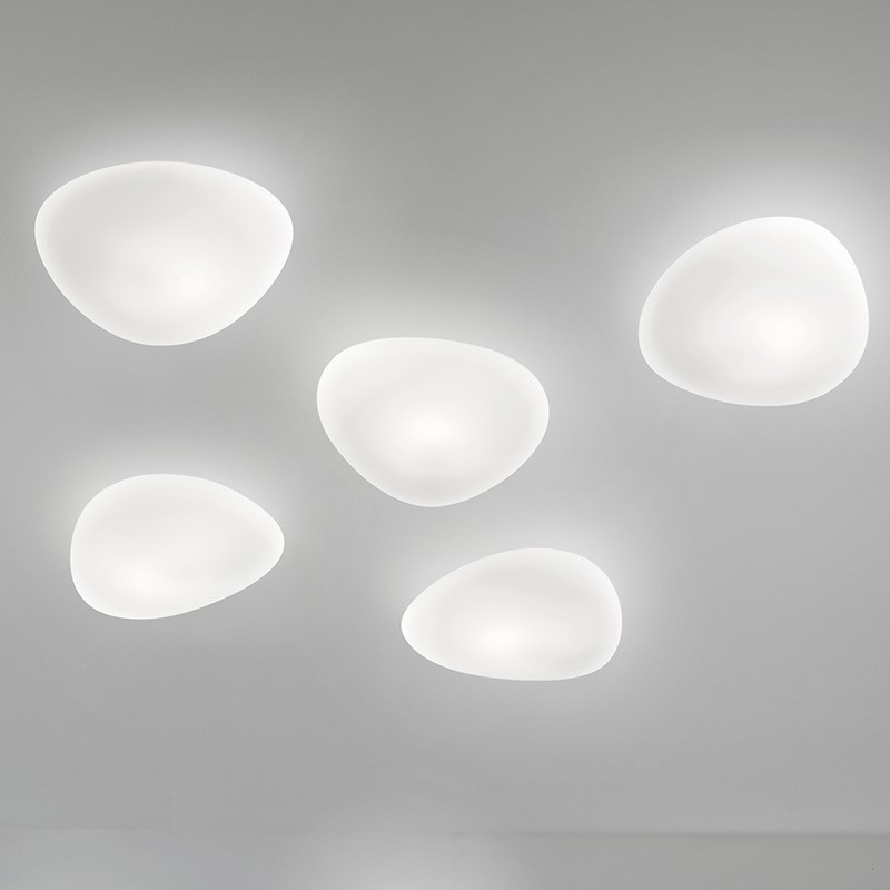 Die Decken-/Wandleuchte Vistosi NEOCHIC Media verbindet die Vorzüge mundgeblasenen Glases mit einem weichen und natürlichen Design, das von der Wirkung von Wasser und Wind auf Stein inspiriert ist. Mit ihren essentiellen Linien und raffinierten Oberflächen stellt sie eine dekorative Beleuchtung mit einem minimalen, aber raffinierten Stil dar, der jede Art von Umgebung perfekt aufwertet.