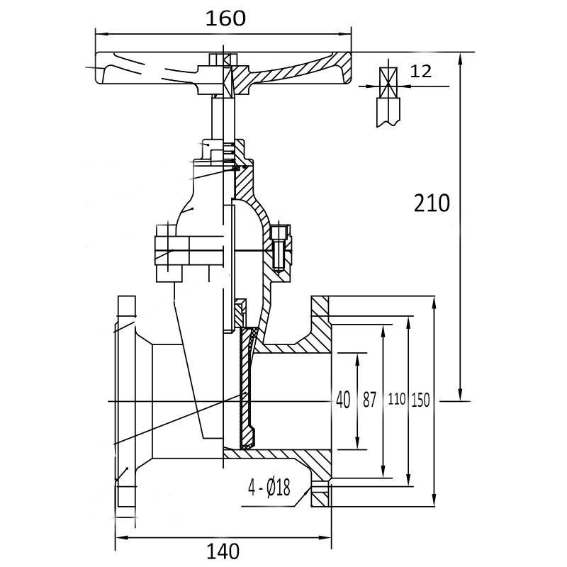 BF Control Absperrschieber PN16 40 mm 1 1/2 Gusseisen BS160040