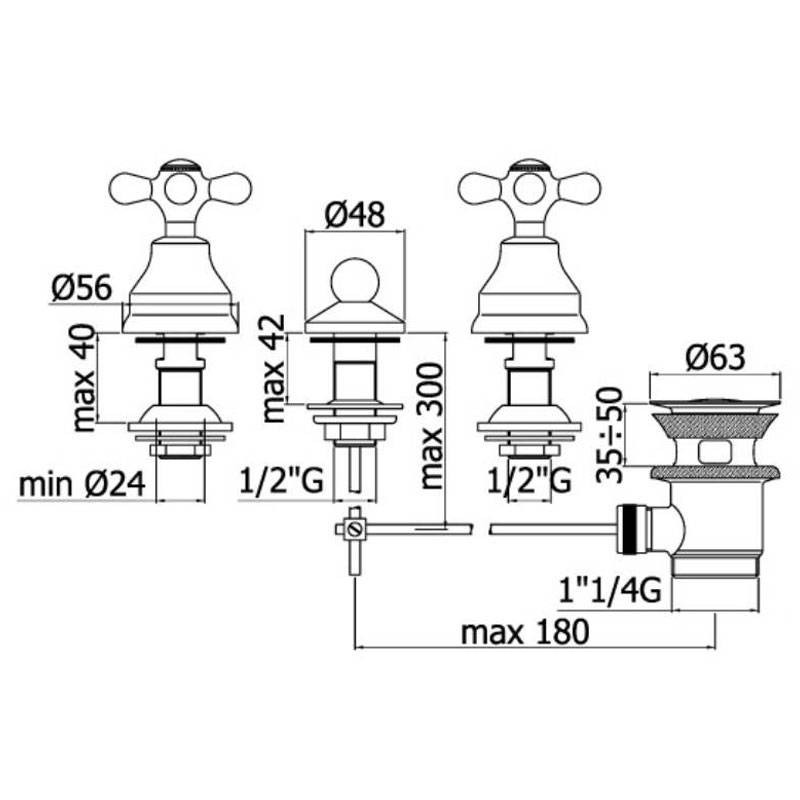 Paffoni Iris Retrò Bidet-Armatur mit automatischem Abfluss...