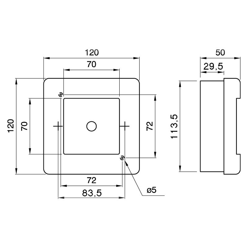 | Abmessungen (BxHxT) | 120 x 120 x 50 mm |