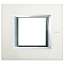Quadratische Platte 2 Plätze Bticino Axolute für Unterstützung H4702. Farbe Gebürstetes Aluminium. Es ist nicht möglich, die Platte auf andere Bticino-Serien zu montieren, sondern nur auf die Axolute-Serie.
