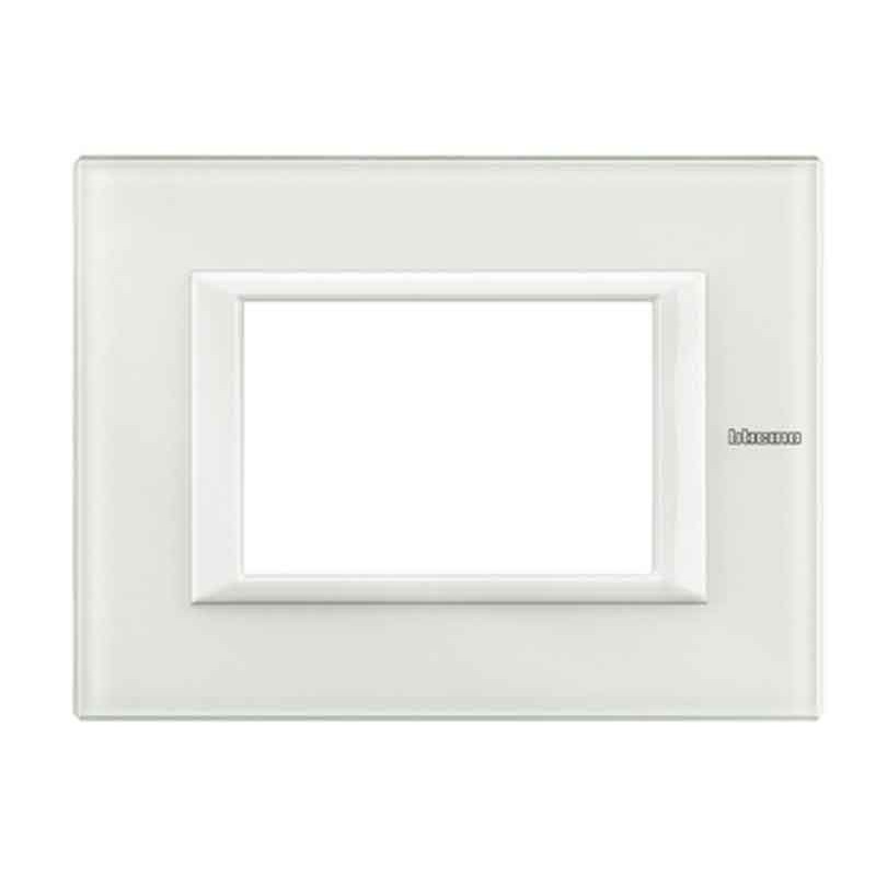 Quadratische Platte 3 Plätze Bticino Axolute zur Unterstützung H4703. Farbe Weißglas. Es ist nicht möglich, die Platte auf andere Bticino-Serien zu montieren, sondern nur auf die Axolute-Serie.