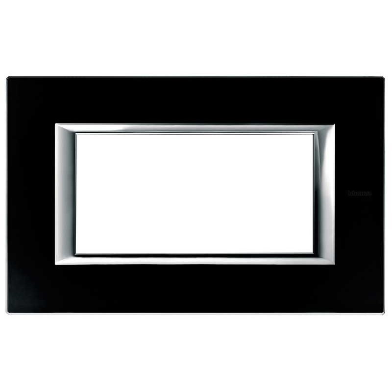 Rechteckige Platte 4 Plätze Bticino Axolute für Unterstützung H4704. Glasfarbe Black Night. Es ist nicht möglich, die Platte auf andere Bticino-Serien zu montieren, sondern nur auf die Axolute-Serie.