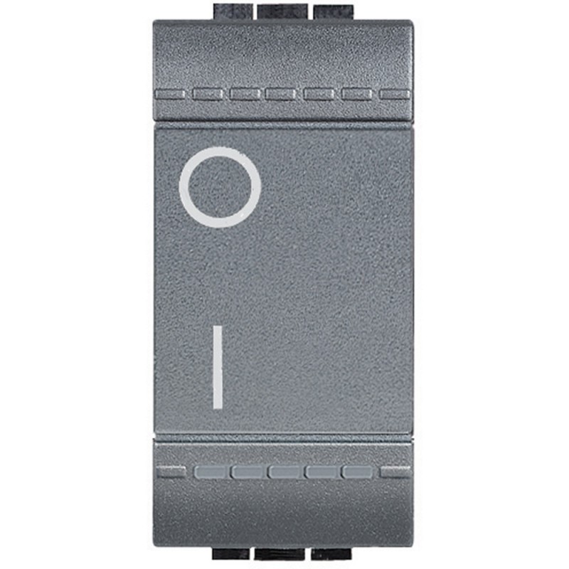 Schalter Bticino LivingLight anthrazit bipolar auch 0/1-Schalter genannt. Der Schalter wird meist für Haushaltsgeräte verwendet.