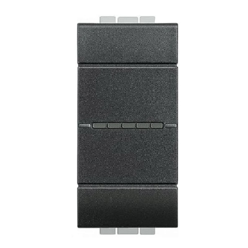 Kreuzschalter Bticino LivingLight anthrazit axial. Der Kreuzschalter wird verwendet, wenn wir eine oder mehrere Lampen von drei oder mehr verschiedenen Punkten aus einschalten müssen. Besonders geeignet für AIR-Platten.