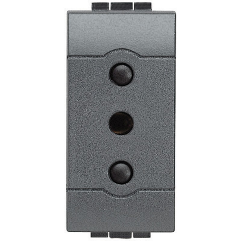 Bticino LivingLight anthrazit Sockel. In die Steckdose können Sie nur 10A-Stecker (kleine Stecker) stecken.