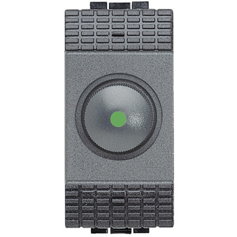 Bticino LivingLichtknopfdimmer mit eingebautem Schalter anthrazit. Der Dimmer wird zum Einstellen der Intensität von Glühlampen verwendet (keine LEDs oder Energiesparlampen). Eingebaute Sicherung.