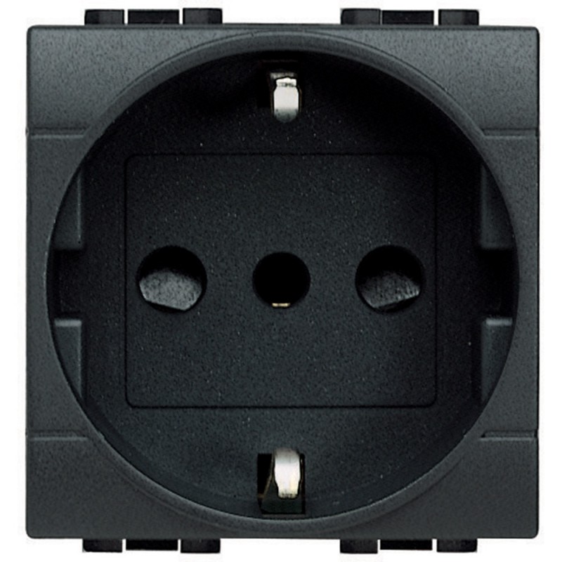 Bticino LivingLight anthrazit schuko Steckdose. Die Schuko-Steckdose, auch bekannt als deutsche Steckdose, erlaubt es Ihnen, nur Schuko-Stecker in sie einzuführen.