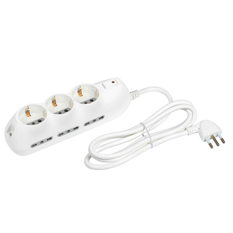 Bticino Steckdosenleiste 9 deutsche zweipolige Steckdosen 6 10/16A Schalter und Blitzschutz weiß 3699DBF