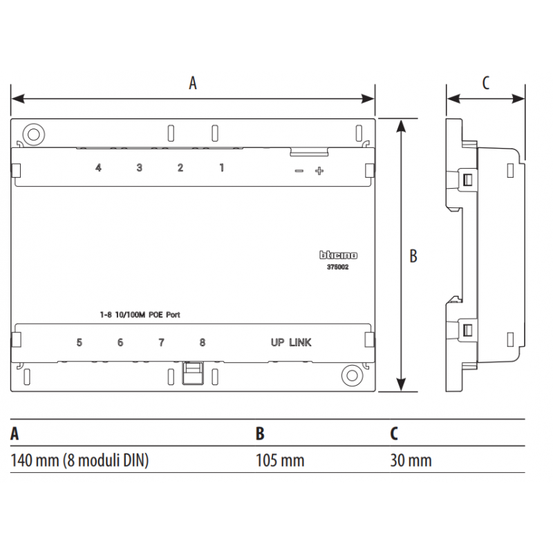 Bticino PoE-Switch für IP-Video-Türsprechanlagen 375002