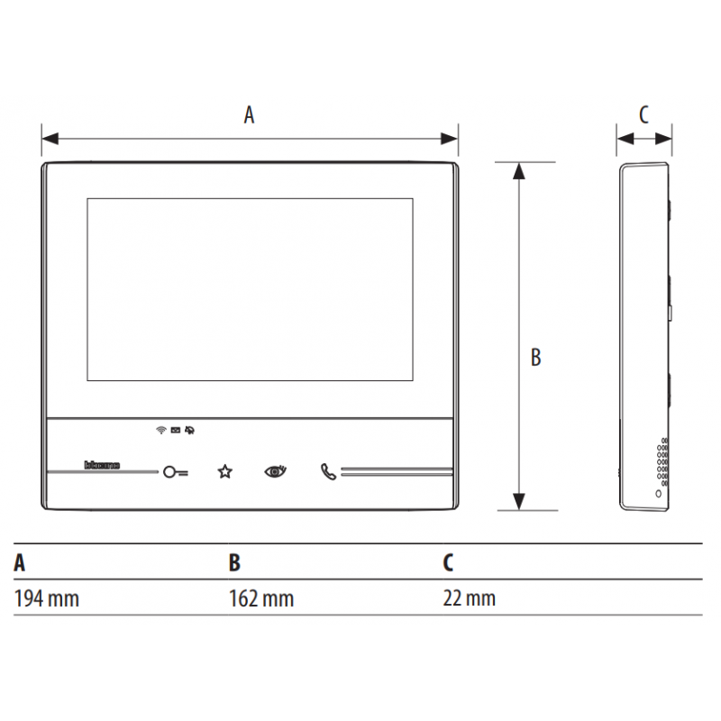 - Hörerlose Farbvideo-Hausstation in 2-Draht-Technik mit 7“ (17,8 cm, 16:9) LCD-Touchscreen, integrierter Induktionsschleife für Hörgeräteträger, Anrufbeantworterfunktion mit Audio-/Videospeicher (Memory) und integrierter WLAN-Schnittstelle zur Anbindung an bis zu 10 Smartphones.