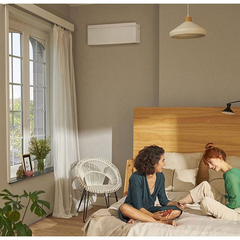 Daikin Stylish kann überall installiert werden, in Privathaushalten, Unternehmen und sogar Hotels; die geringe Größe der Inneneinheiten erleichtert die Installation. Das DAIKIN Stylish-Klimagerät sorgt überall dort, wo es installiert ist, für hohen Komfort. Die eingestellte Temperatur wird immer konstant gehalten und die Luft wird unmerklich verteilt. Das neue Gebläse hat Lamellen mit vielen kleinen Einschnitten, um die Luft besser zu verteilen; das interne Wärmetauschregister umschließt das Gebläse an drei Seiten, ist größer, nimmt aber weniger Platz ein, so dass das Innengerät dünner ist. Der gebotene Komfort ist der beste, den man sich wünschen kann, auch dank des extrem leisen Betriebs.
