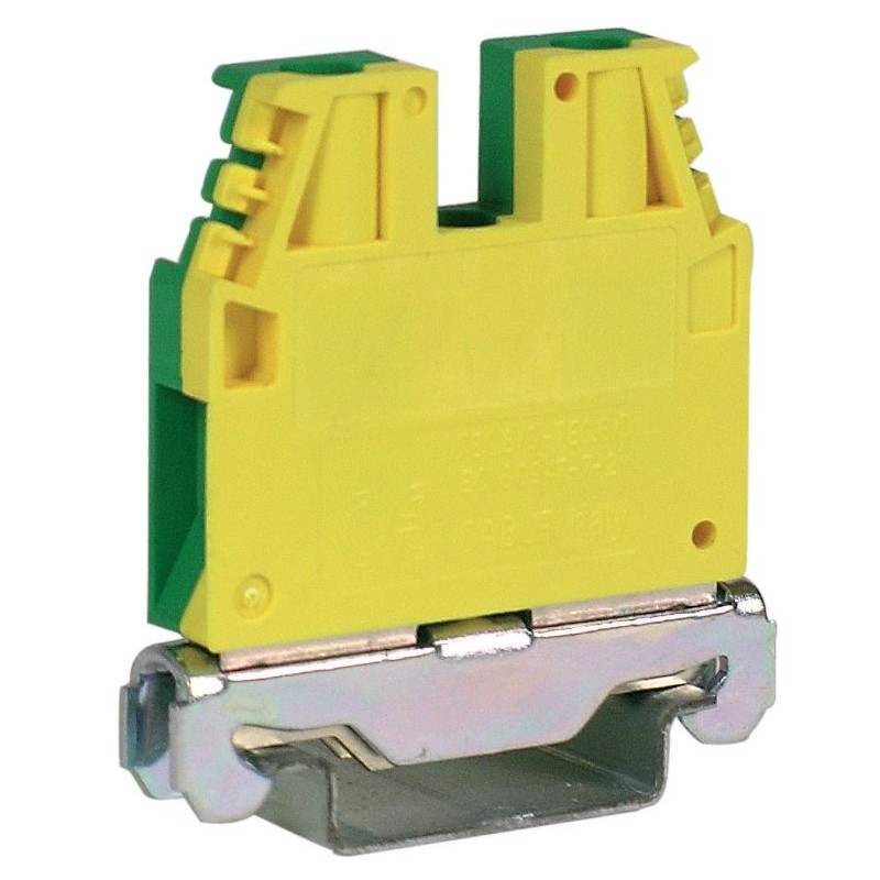 Masseklemme Cabur Serie TEC Code TO120, für TH35-Schiene, geschlossener Isolierkörper, gleiche Abmessungen wie die Serien CBC und GPA: