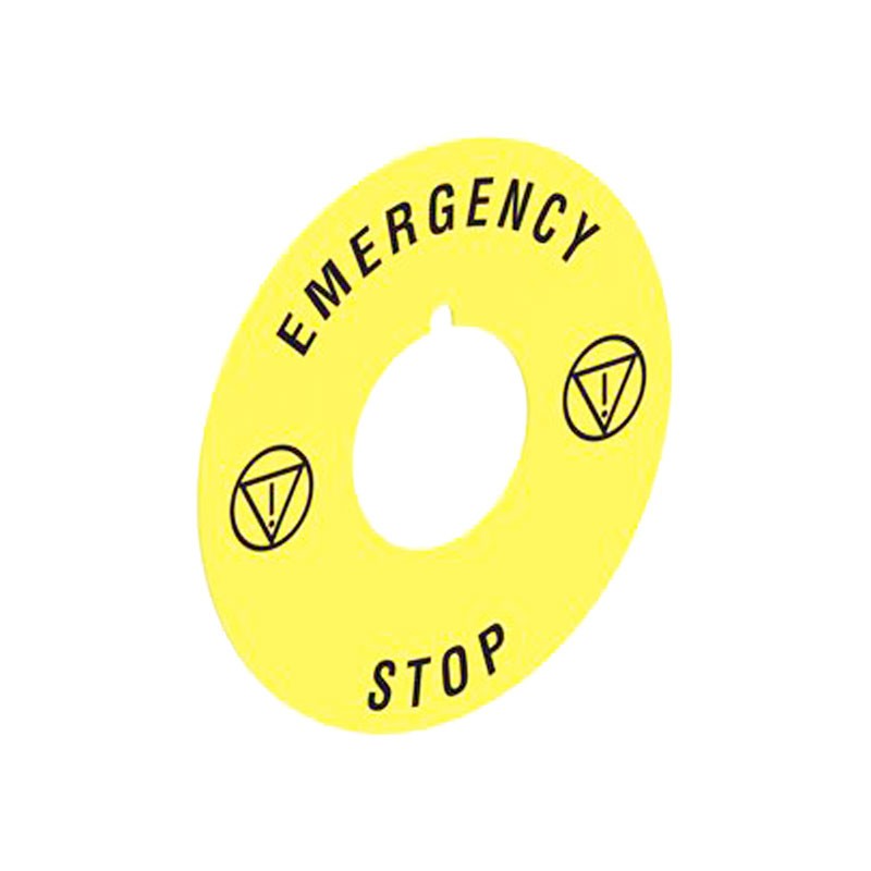 Lovato Notfallscheibe für Pilzdrucktaster, Kunststoff, Durchmesser 60 mm, mit Aufschrift EMERGENCY/STOP.