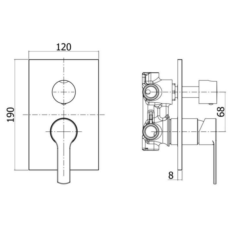 Mit 3 unabhängigen Ausgängen und 3 kombinierten Positionen ermöglicht diese Armatur eine Vielzahl von Duschkonfigurationen, wie Kopf-, Hand- und Seitenbrausen, die auch gleichzeitig verwendet werden können. Die integrierte Umstellkartusche sorgt für eine reibungslose und präzise Auswahl der Funktionen.