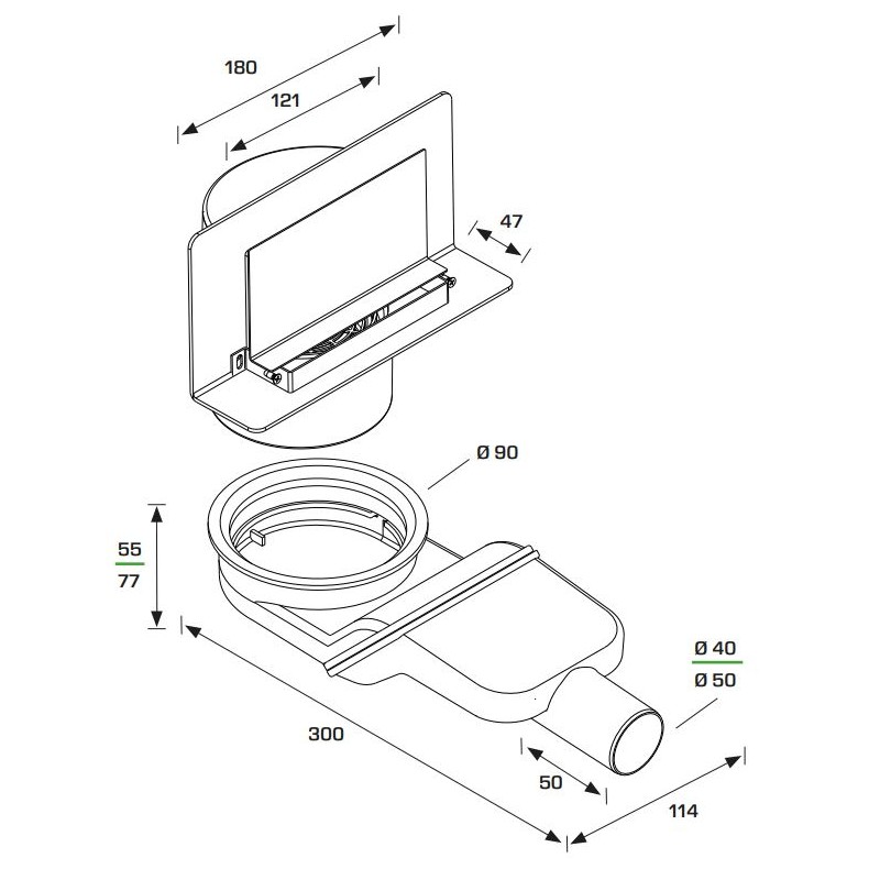 Bonomini Duschablauf für die Wandmontage mit Siphon und Gitter mit folgenden Merkmalen