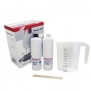 Das Produkt wird in wiederverschließbaren Flaschen mit Mischbecher und Spatel geliefert, die eine einfache, präzise und abfallfreie Anwendung ermöglichen.