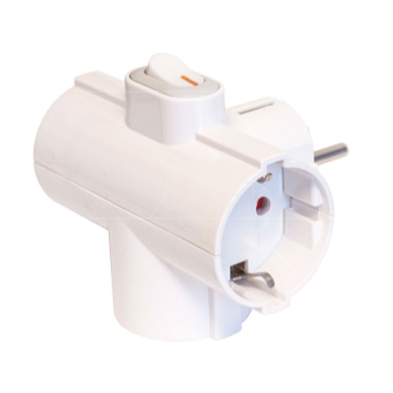Fanton dreifacher Adapter bestehend aus deutschem Stecker 2P+E 16A, und 3 deutschen Steckdosen 2P+E 16A, Farbe weiß.