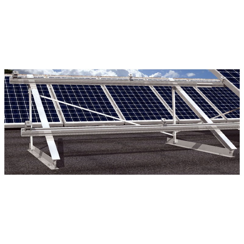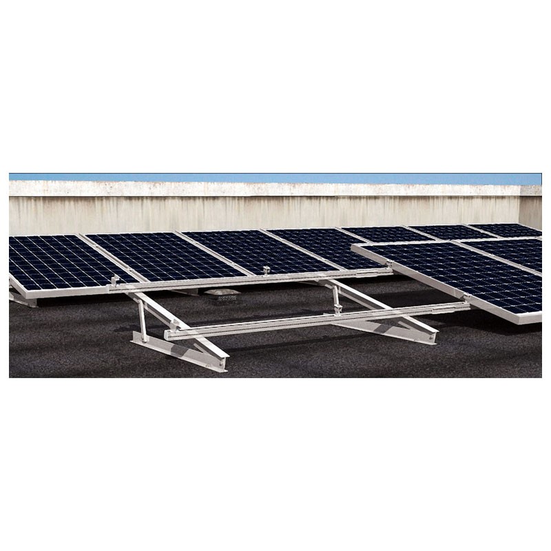 Das STFN 25°-30°-35°-Dreieck für die flache Montage von Fotovoltaikanlagen auf Flachdächern. Geeignet für die Installation von Paneelen mit Hoch- oder Querformatausrichtung. Es ermöglicht die horizontale und vertikale Anordnung der Module.