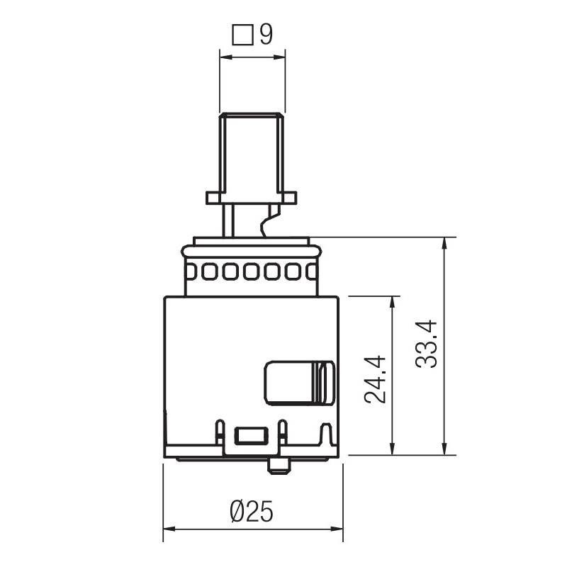 Ersatzkartusche für Mischer Porta e Bini Serie Plus Line, mit zwei seitlichen Auslaufstiften, Durchmesser 25 mm.