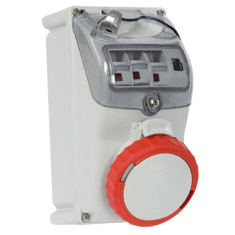 Industrielle verriegelte Wandsteckdose mit Fanton-Sicherungshalter mit den folgenden Merkmalen: