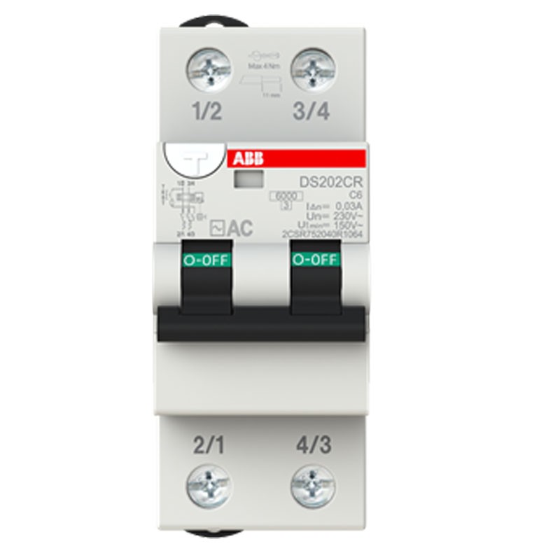 Abb Fehlerstrom und Leitungsschutzschalter 2 Pole 6A 30mA AC Typ 6kA 2 Module DS202CRC6AC30