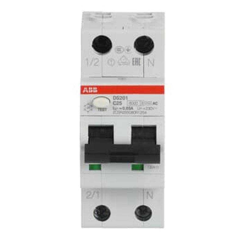 ABB Fehlerstrom und Leitungsschutzschalter 1P+N 25A 30mA AC Typ 6kA 2 Module DS1C25AC30