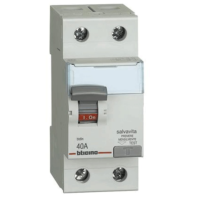 Fehlerstromschutzschalter Bticino, 2 Module, DIN-Anschluss (universell für jede Schalttafel auf dem Markt), 2P-Pole, 40 Ampere, Differenzialstrom Idn 0,03A, Spannung 230/400 Vac, Typ A.