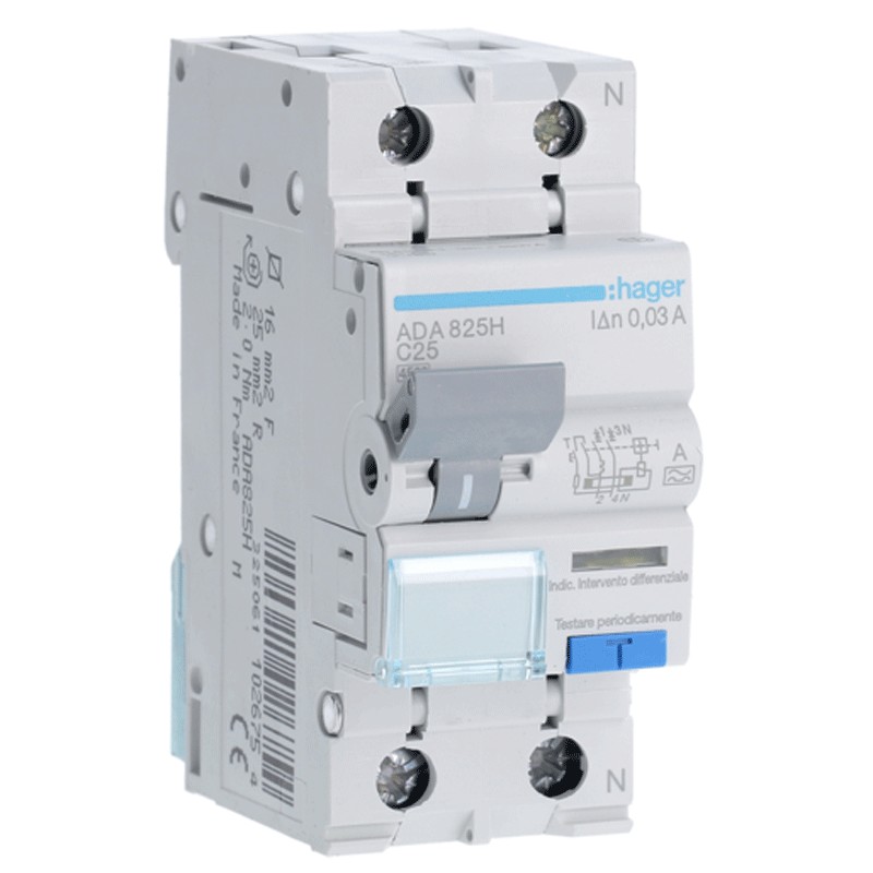 Hager Fehlerstromschutzschalter 1P+N 25A 4,5kA 30mA Kurve C Typ A 2M ADA825H