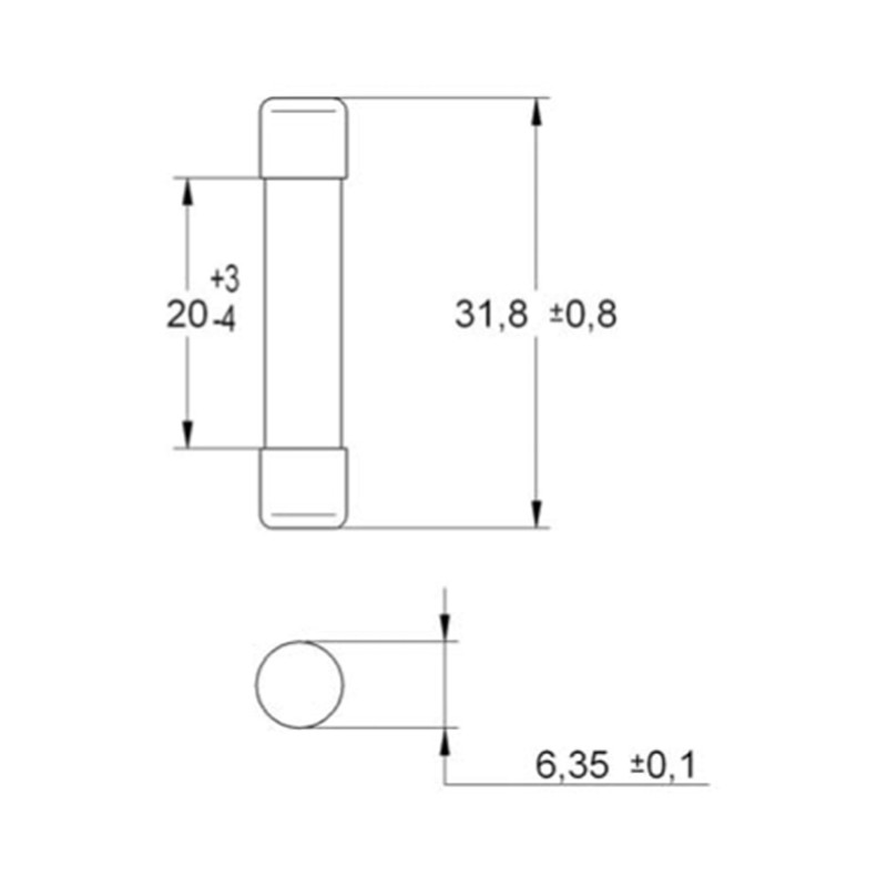 - Abmessungen der Sicherungslehre 6,3 x 32 mm