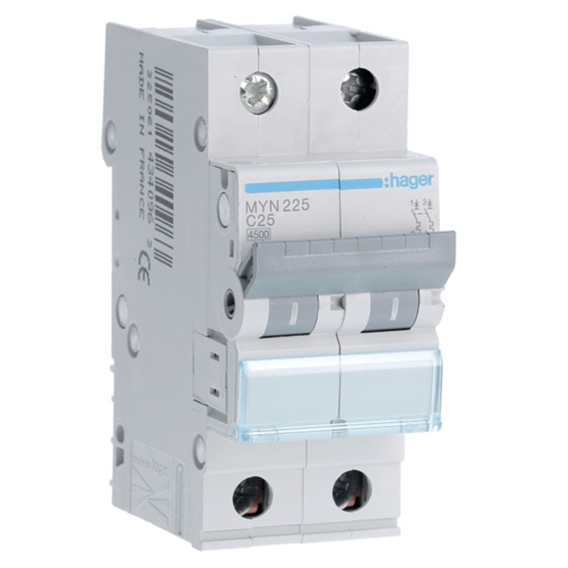 Leistungsschalter Hager 2P 25A 4,5 KA C 2 moduliMYN225