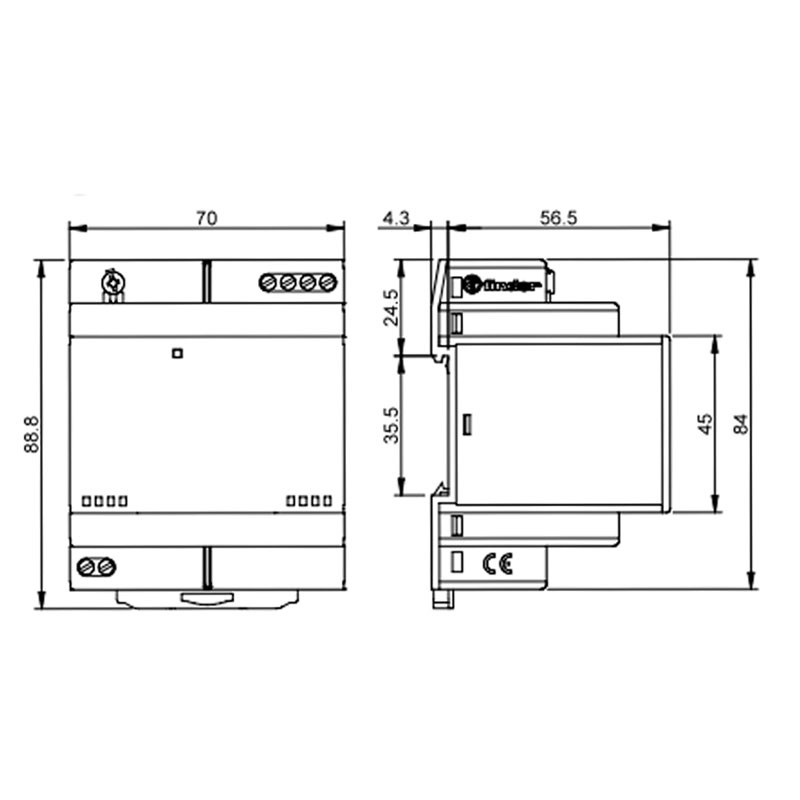 - Kleine Abmessungen: 70 mm (4 Module) breit