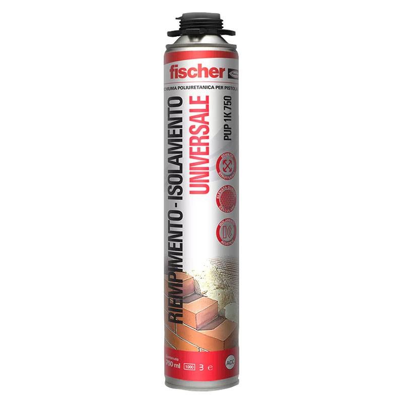 Fischer PUP 1K 750 Mehrzweck-Polyurethanschaum für Pistole mit den folgenden Eigenschaften