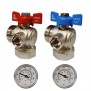 Cappellotto Paar 1 Zoll x 1 Zoll Eck-Kugelhähne für Strahlungssysteme mit Thermometer. Länge 50 mm.