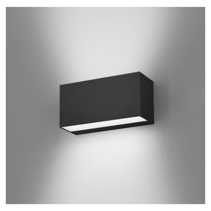 LED-Leuchte für die Wandmontage, mit bidirektionalem Lichtstrahl. HONGLI LEDS. Lebensdauer 36.000 Stunden (Wirkungsgrad 70%). Gehäuse aus Aluminiumdruckguss mit geringem Kupferanteil, grau, weiß oder anthrazitschwarz lackiert. Die Leuchte ist mit einem vorverdrahteten Wandmontagesockel mit Schnellverschlussklemmen ausgestattet. Transparentes Glas mit mikroprismatischem Diffusor. Silikondichtungen. Schrauben aus rostfreiem Stahl. Dimmbare LED-Platine mit 220-240V Netzspannung.