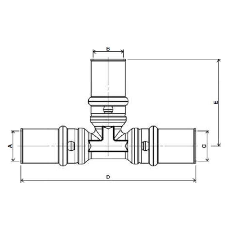 T-Pressfitting für Mehrschichtverbundrohr Ape AP 631 mit folgenden Eigenschaften: