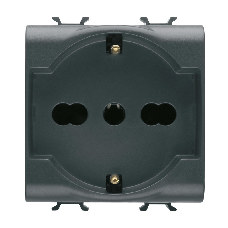 Gewiss Chorus 250V- 2P+E 16A bivalente Schuko-Steckdose, 2 Module, Farbe schwarz